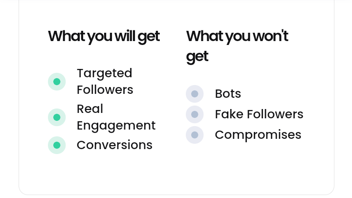 We only target and engage with real people and active accounts. Flock Social wants to help you build authentic and long-lasting relationships with your future Followers!